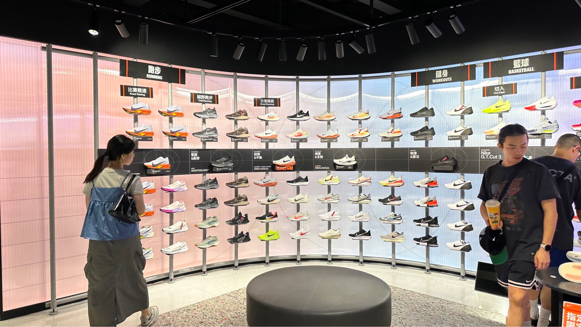 板材表面經網版印刷後,搭配LED燈光照明,達到NIKE廣告與NIKE光牆效果